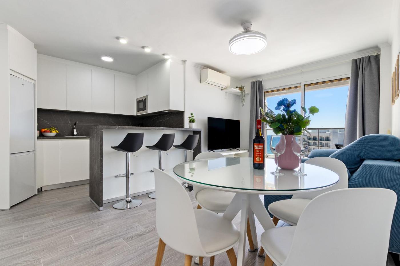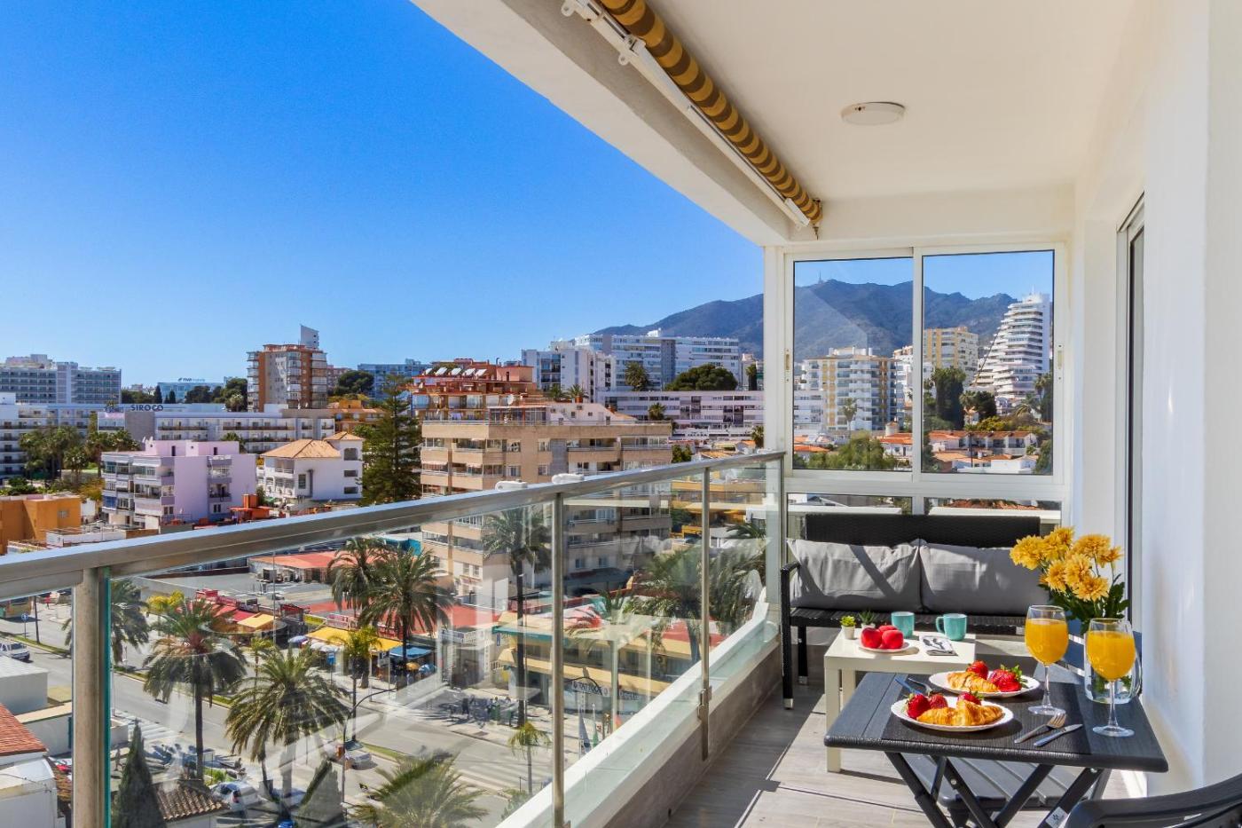 Mediterranean Beach Relax - Pool and Parking!, que tiene piscina de temporada al aire libre, jardín y terraza, dispone de alojamiento en Benalmádena con wifi gratis y vistas al mar. El alojamiento, que está a 1 min a pie de Playa de Malapesquera, ofrece bar y parking privado gratis.