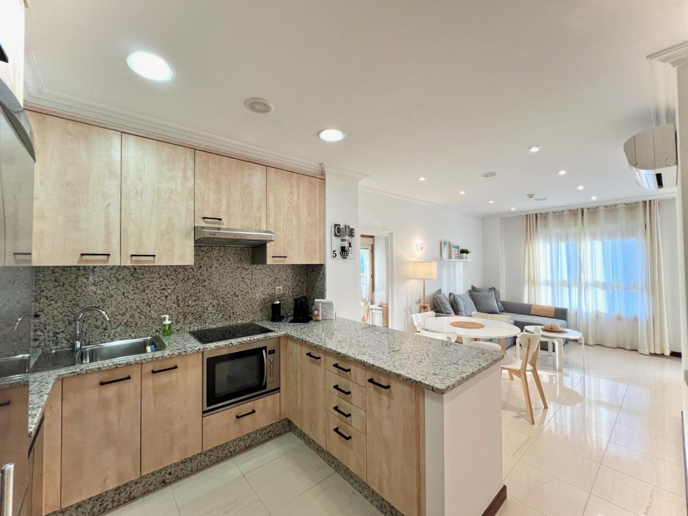 Apartamento de 1 dormitorio. This apartment is comprised of 1 living room, 1 separate bedroom and 1 bathroom with a shower and free toiletries. The well-fitted kitchen features a stovetop, a refrigerator, a dishwasher and kitchenware. The air-conditioned apartment offers a flat-screen TV, a washing machine, a tea and coffee maker, a seating area as well as pool views. The unit offers 2 beds.