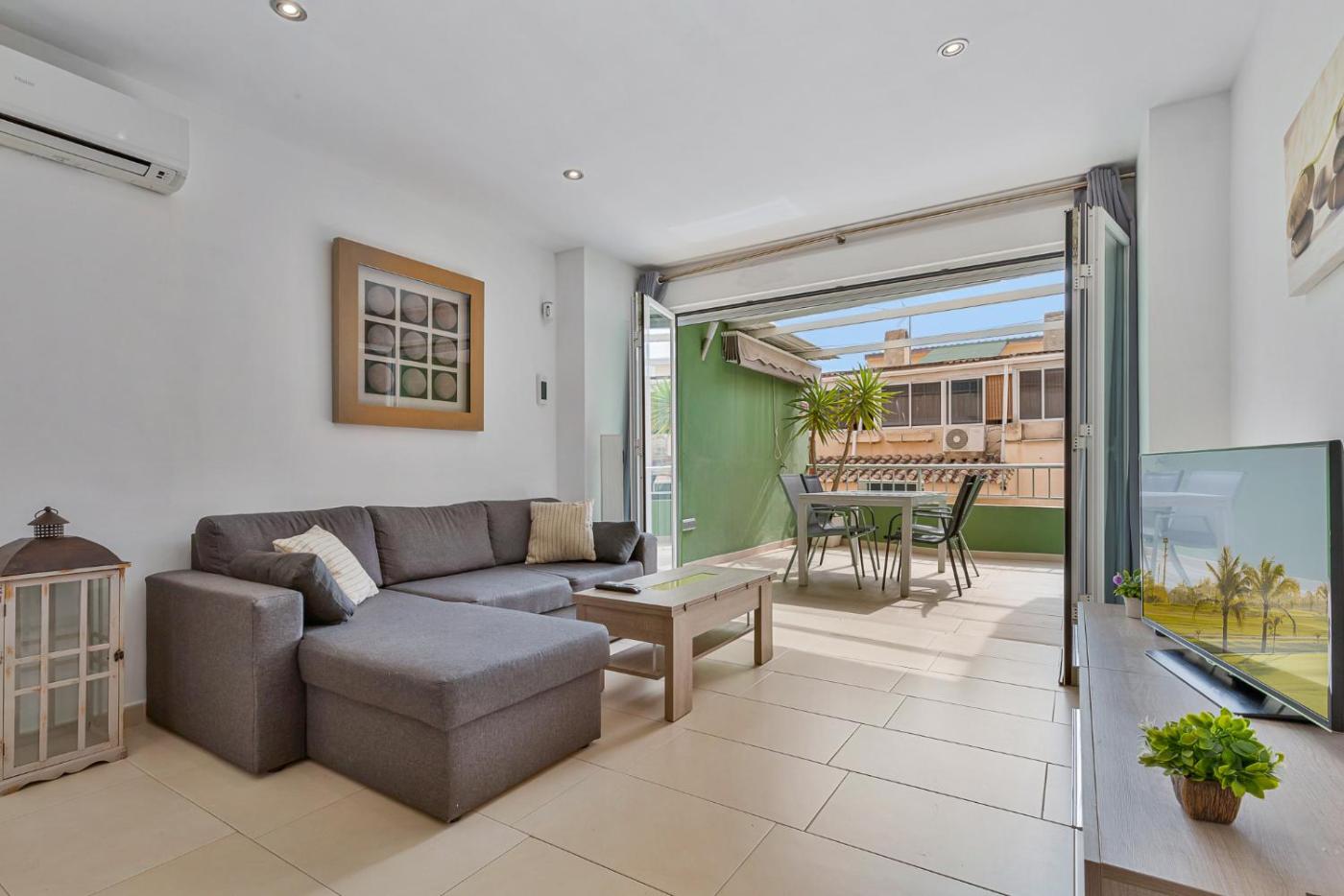 Apartamento de 2 dormitorios con terraza. Featuring a private entrance, this air-conditioned apartment is comprised of 1 living room, 2 separate bedrooms and 1 bathroom with a walk-in shower and a hairdryer. The well-equipped kitchen features a stovetop, a refrigerator, a dishwasher and kitchenware. The spacious apartment offers a washing machine, a tea and coffee maker, a seating area as well as a terrace with city views. The unit offers 5 beds.