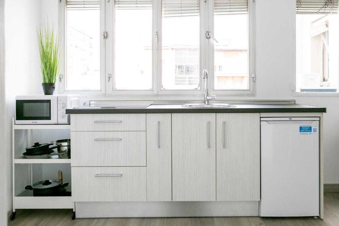 Apartamento Estudio. The apartment has 1 bedroom and 1 bathroom with a shower and free toiletries. In the well-fitted kitchen, guests will find a stovetop, a refrigerator, kitchenware and an oven. This apartment is air-conditioned and features a seating area with a flat-screen TV, a washing machine, a tea and coffee maker, a dining area, as well as a wardrobe. The unit has 1 bed.