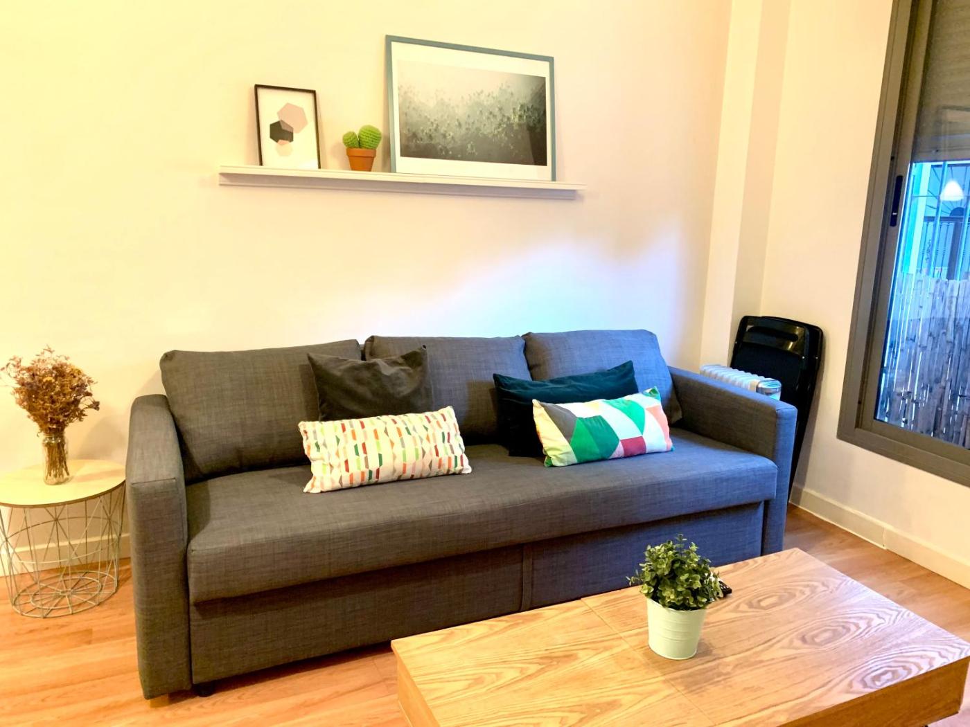 Apartamento - Planta baja. Featuring a private entrance, this air-conditioned apartment comprises 1 living room, 1 separate bedroom and 1 bathroom with a bath and a hairdryer. Guests can make meals in the kitchen that comes with a refrigerator, a dishwasher, kitchenware and a microwave. The apartment features parquet floors, a seating area with a flat-screen TV, a washing machine, a coffee machine, as well as a dining area. The unit offers 2 beds.