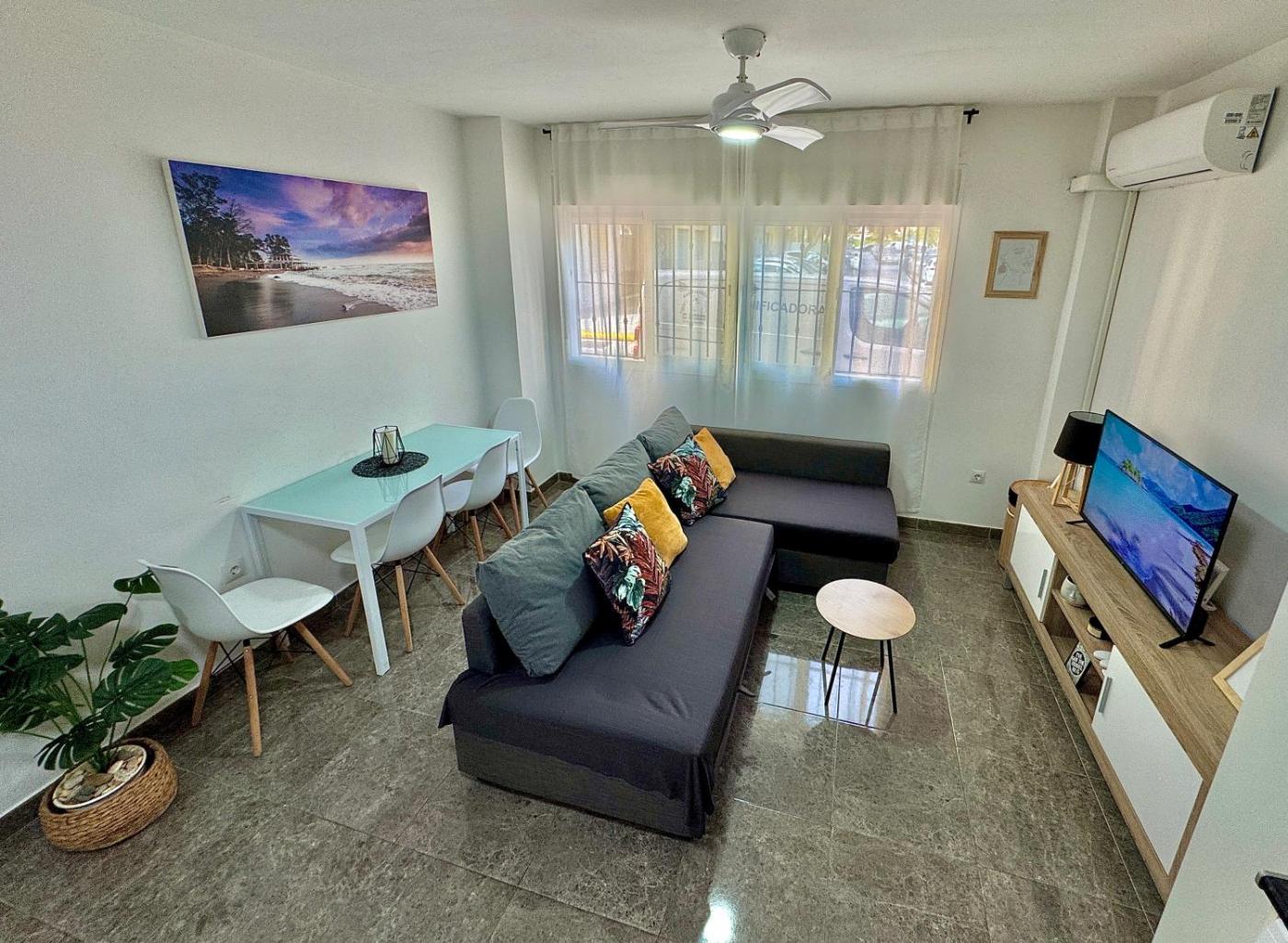 Apartamento de 1 dormitorio. This air-conditioned apartment comprises 1 living room, 1 separate bedroom and 1 bathroom with a bath or a shower. Guests can make meals in the kitchen that comes with a refrigerator, kitchenware, a microwave and a tea and coffee maker. The apartment provides a washing machine, a wardrobe, a sofa and a flat-screen TV. The unit offers 2 beds.