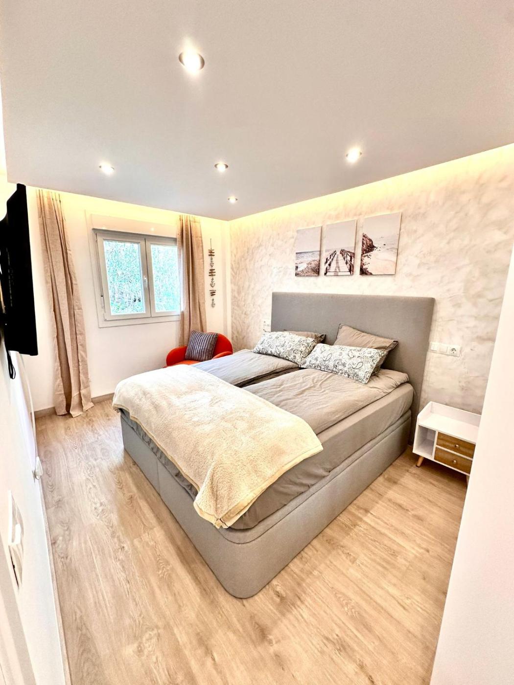Apartamento de 2 dormitorios. This spacious apartment includes 1 living room, 2 separate bedrooms and 1 bathroom with a shower and free toiletries. In the fully equipped kitchen, guests will find a stovetop, a refrigerator, kitchenware and an oven. The air-conditioned apartment offers a flat-screen TV with streaming services, a washing machine, a private entrance, a tea and coffee maker as well as sea views. The unit has 3 beds.